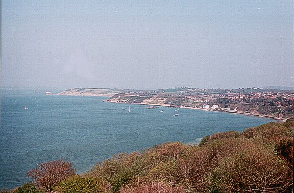 Enlarged section of the cliff at north end of Totland Bay, showing uncovered bare cliff face. April 2003. Totland Bay is now protected by sea defences that have allowed the cliffs behind to become stabilised. More scrub and trees have become established, covering large areas of the cliff face, although there are occasional small landslides. |