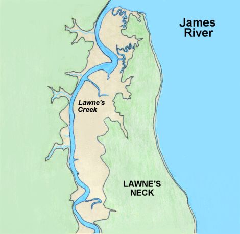| A Map showing Lawne's Creek and Lawne's Neck. | |