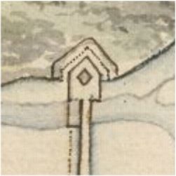It is possible that it was at this time that one, or maybe two redoubts, were constructed to defend the two entry points into the town: the eastern end via the draw bridge and the southern end via the embankment. A small fortification, a type known as a lunette, was built at the southern end of the causeway, straddling the Thorley Brook where it flowed past the southern side of the Thorley Haven. This fortification was built to deny an enemy access into Yarmouth via the causeway. An Admiralty map of 1794 by George Burns shows a "redobt" situated at either the southern or the eastern end of the town, covering the drawbridge. It is uncertain when these were built but it would seem likely that they were constructed as part of the reorganisation of Yarmouth's defences in 1662-1664. The causeway lunette is shown on a plan of around 1720 of the western end of the Isle of Wight [King George III Topographical Collection: Shelfmark K top Vol 15, 4].