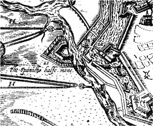 2. These two images show a half-moon, The Spanish Half-moon, as part of the defences of Ostend in Belgium during the siege of 1601-1604. Belägerung der Statt Ostende. Journal. 1604. A true historie of the memorable siege of Ostend and what passed on either side, from the beginning of the siege, vnto the yeelding vp of the towne. by Edward Grimeston. 1604. |